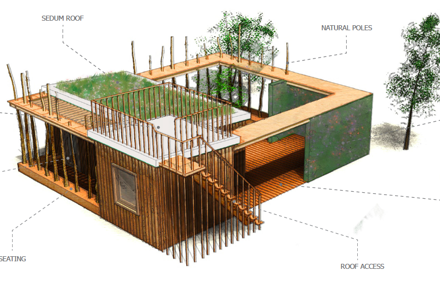 A few months ago we had an idea to create a new type of outdoor learning space inspired by the relationship between indoors and outdoors in traditional Japanese dwellings. We came up with with a very simple concept that worked beautifully at the site, which is currently a large expanse of hard landscaping at Woodlands Primary School. The project received full planning approval last week and The Lodge ( working title) will form a base for outdoor learning and a range of Forest School activities and we see enormous potential for a diverse range of enrichment activities led by children. We are incorporating many learning opportunities for the children and staff into the construction phase and as a team are very excited about delivering this project over the next term. We had a great planning session today with the teachers at Woodlands who like us, and the children, want to squeeze every learning opportunity out of this project. We will be including land art and sculpture into the surrounding area and the process will start with the children working with us to create a story that will form the design narrative, can’t wait until the site goes live on the 26th February.